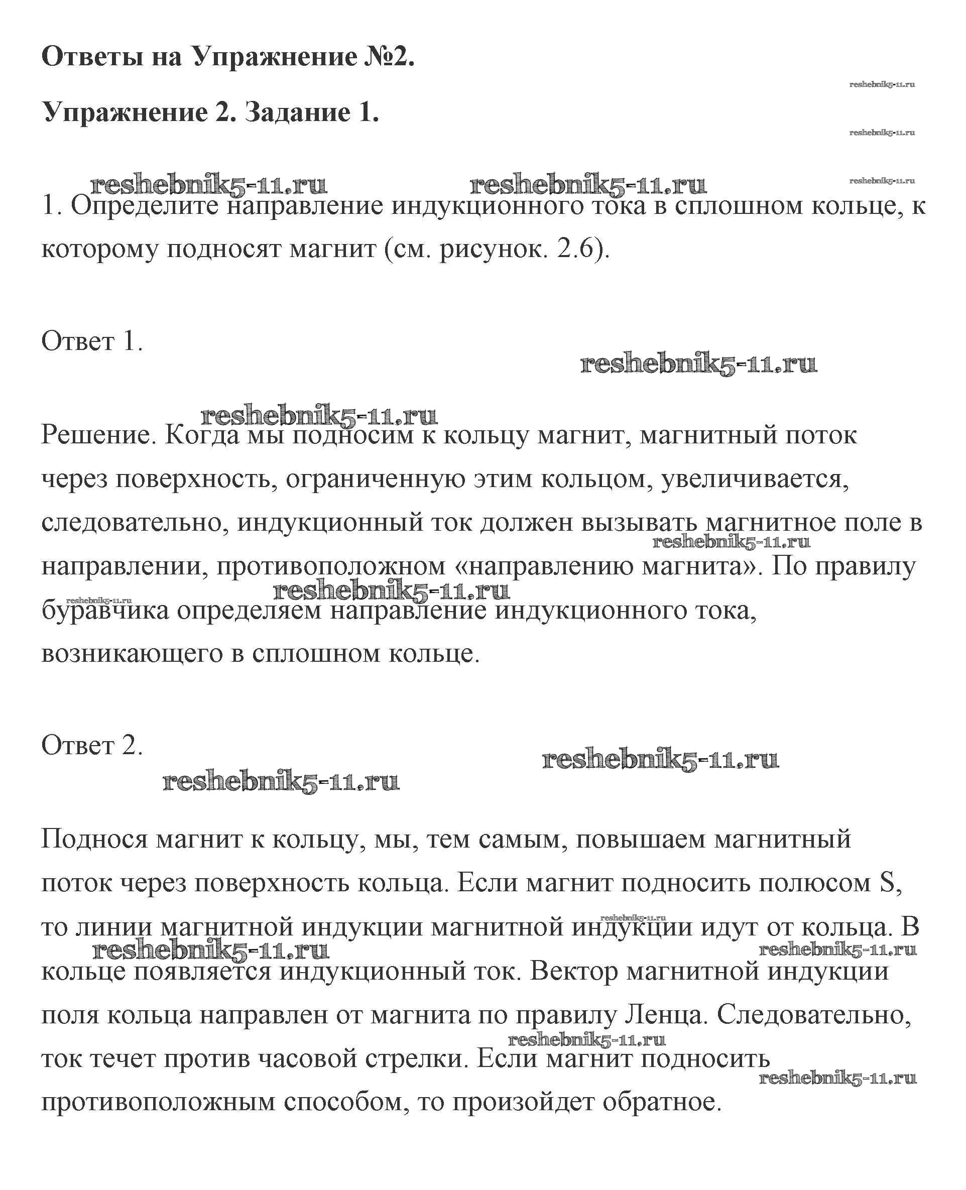 Готовая домашняя работа с ответами по Физике за 11 класс Мякишев, Буховцев, Чаругин, Николаева, Парфеньтьева Учебник Базовый и углубленный уровень Просвещение 2019 ФГОС - Глава 2. Упражнение 2 (Задания) 1