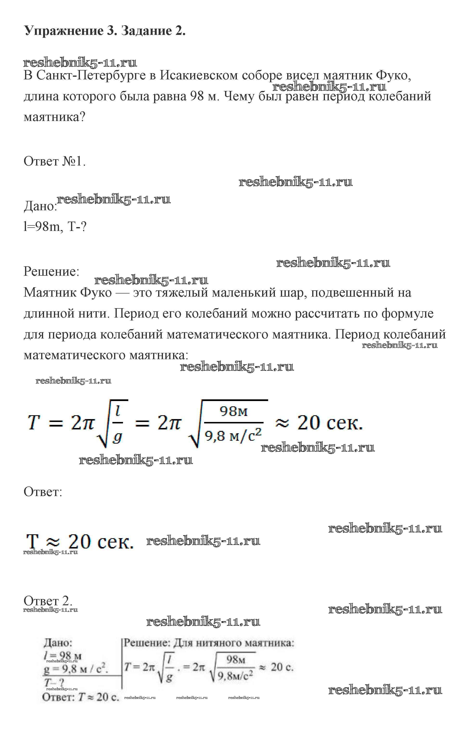 Готовая домашняя работа с ответами по Физике за 11 класс Мякишев, Буховцев, Чаругин, Николаева, Парфеньтьева Учебник Базовый и углубленный уровень Просвещение 2019 ФГОС - Глава 3. Упражнение 3 (Задания) 2
