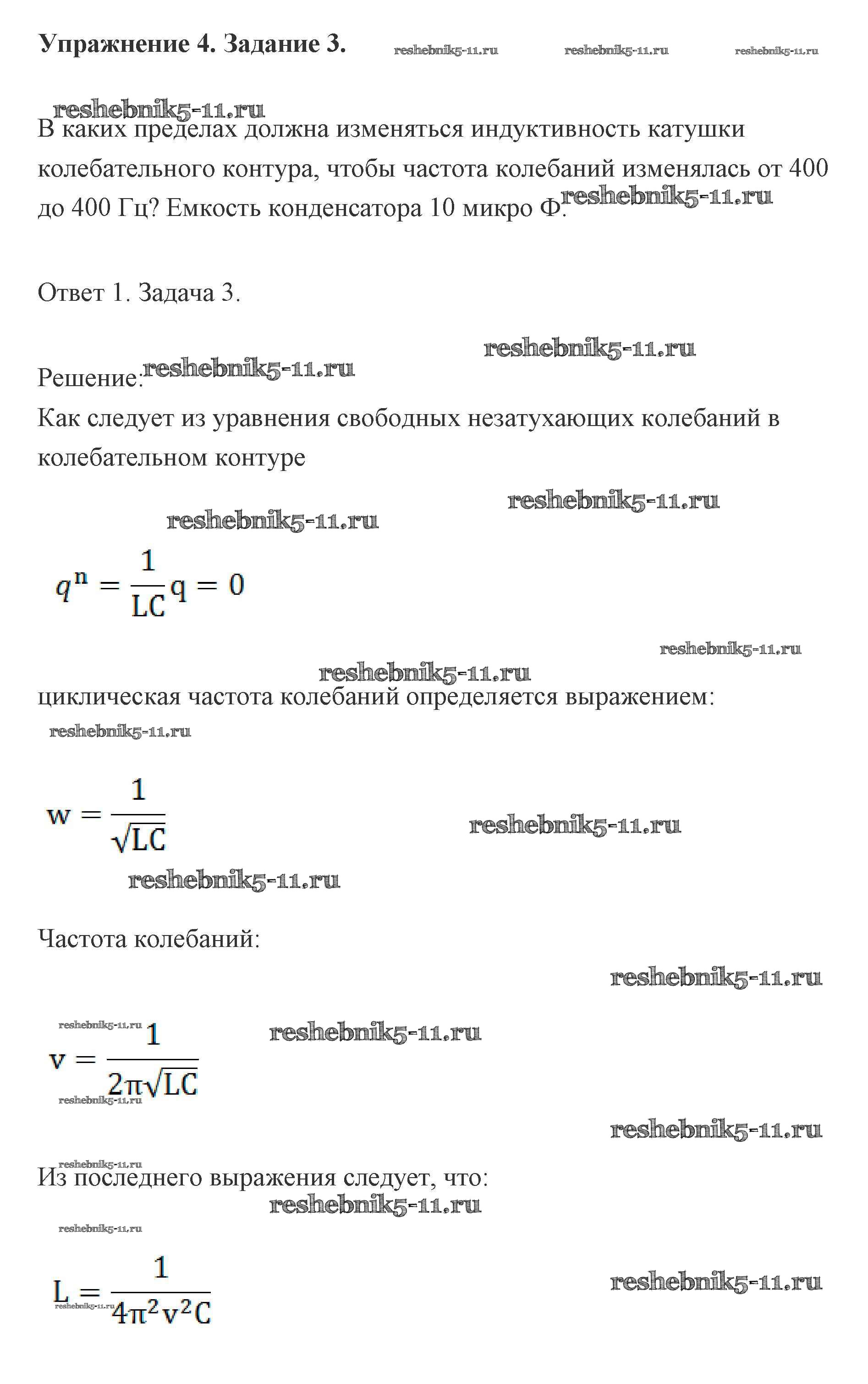 Готовая домашняя работа с ответами по Физике за 11 класс Мякишев, Буховцев, Чаругин, Николаева, Парфеньтьева Учебник Базовый и углубленный уровень Просвещение 2019 ФГОС - Глава 4. Упражнение 4 (Задания) 3