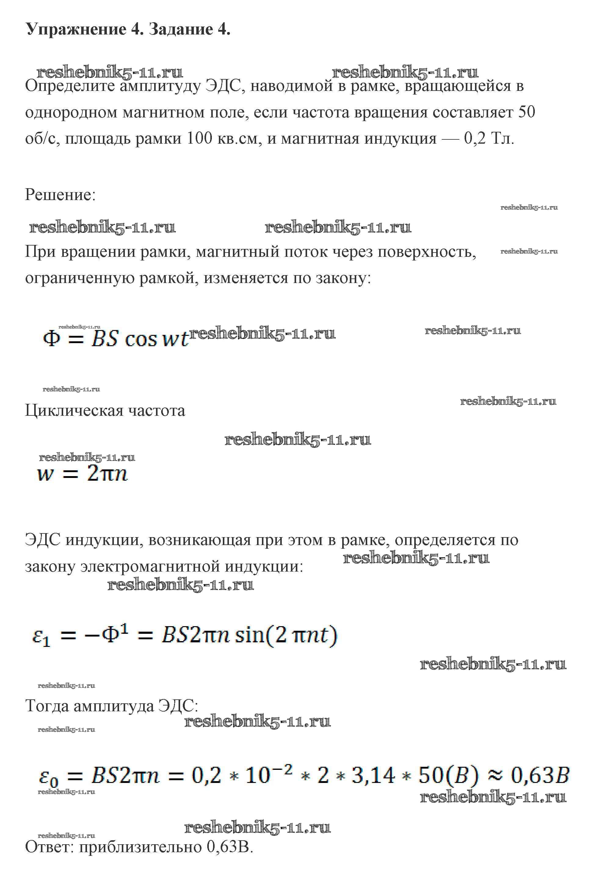 Готовая домашняя работа с ответами по Физике за 11 класс Мякишев, Буховцев, Чаругин, Николаева, Парфеньтьева Учебник Базовый и углубленный уровень Просвещение 2019 ФГОС - Глава 4. Упражнение 4 (Задания) 4
