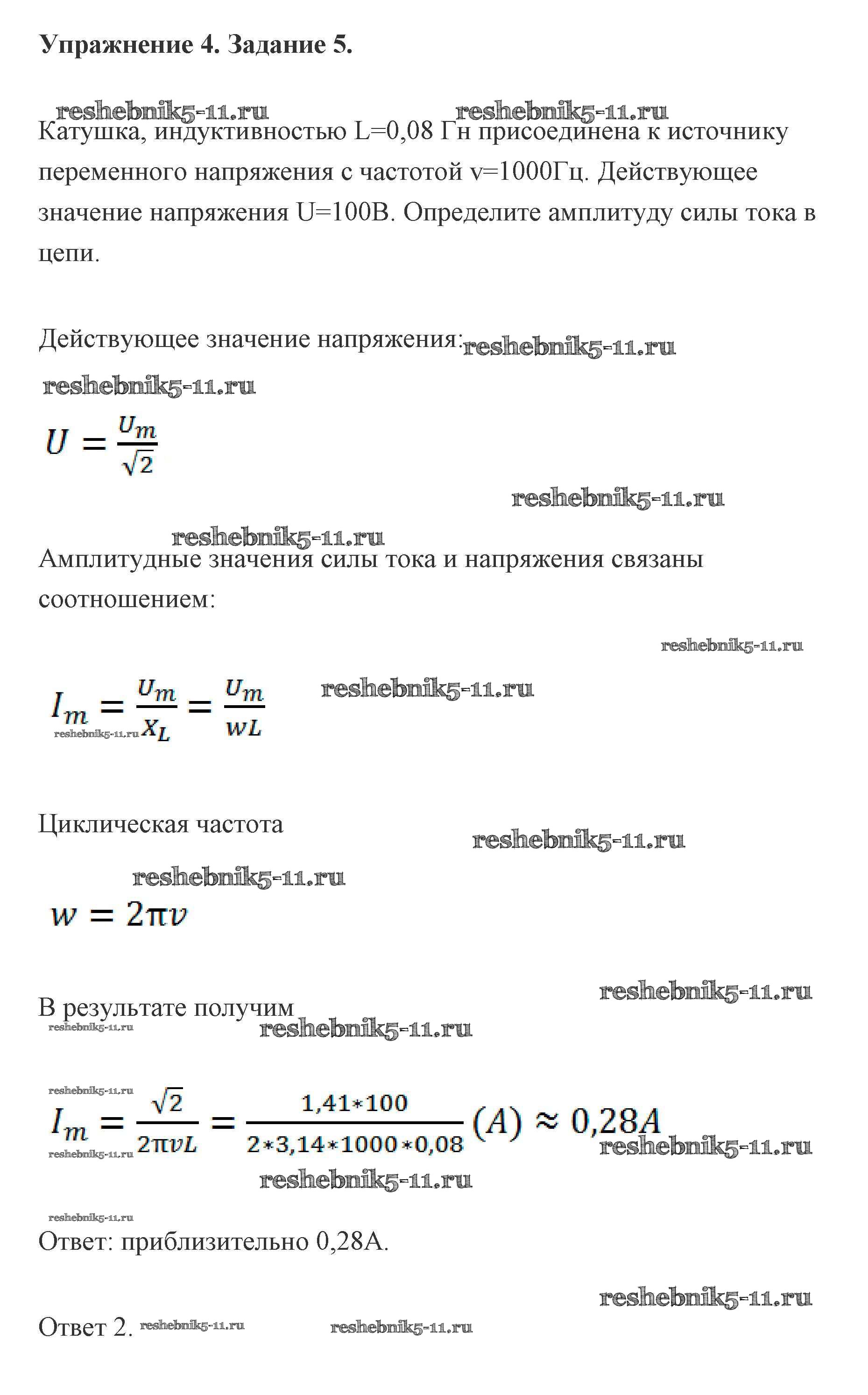 Готовая домашняя работа с ответами по Физике за 11 класс Мякишев, Буховцев, Чаругин, Николаева, Парфеньтьева Учебник Базовый и углубленный уровень Просвещение 2019 ФГОС - Глава 4. Упражнение 4 (Задания) 5