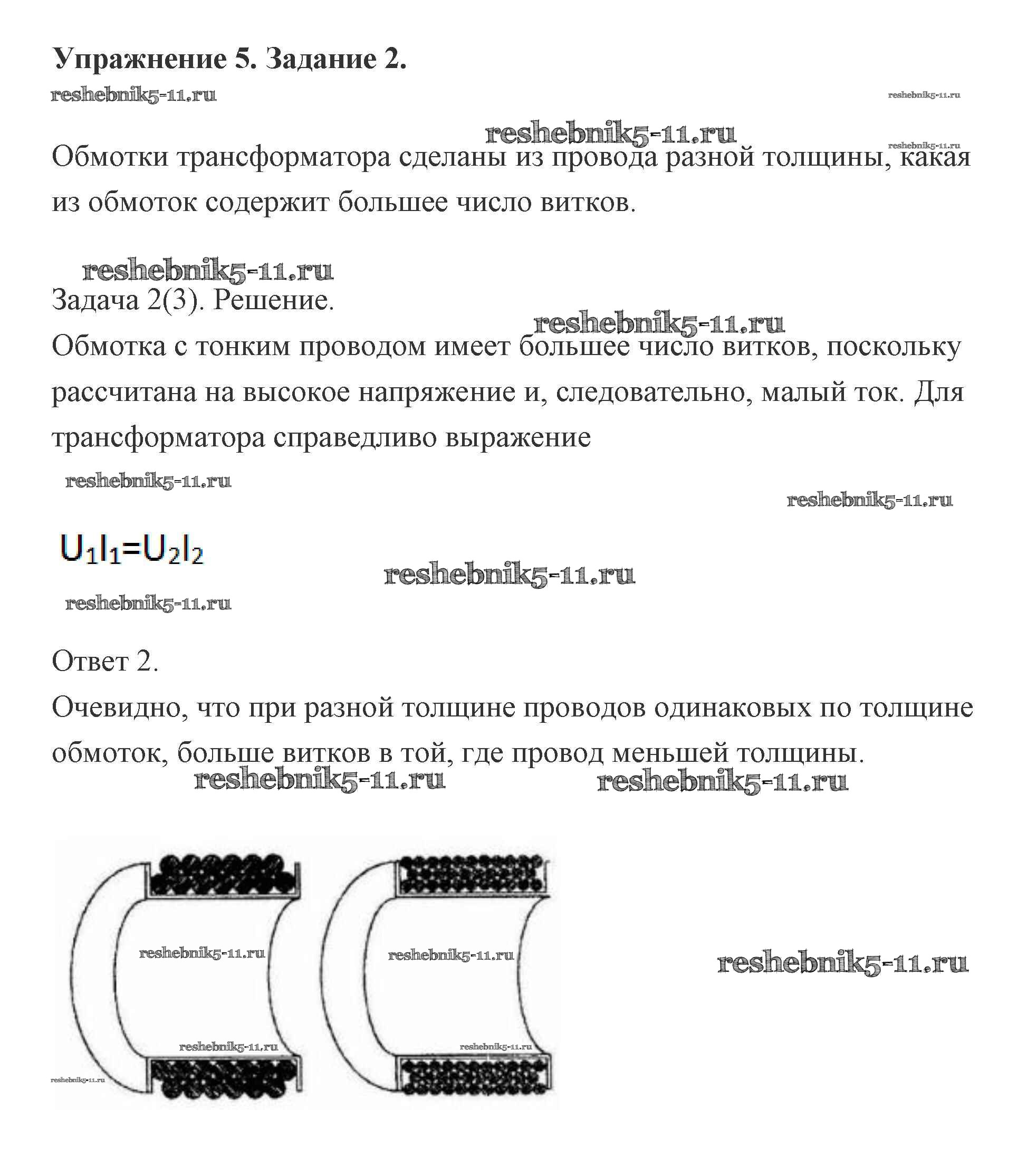 Готовая домашняя работа с ответами по Физике за 11 класс Мякишев, Буховцев, Чаругин, Николаева, Парфеньтьева Учебник Базовый и углубленный уровень Просвещение 2019 ФГОС - Глава 5. Упражнение 5 (Задания) 2