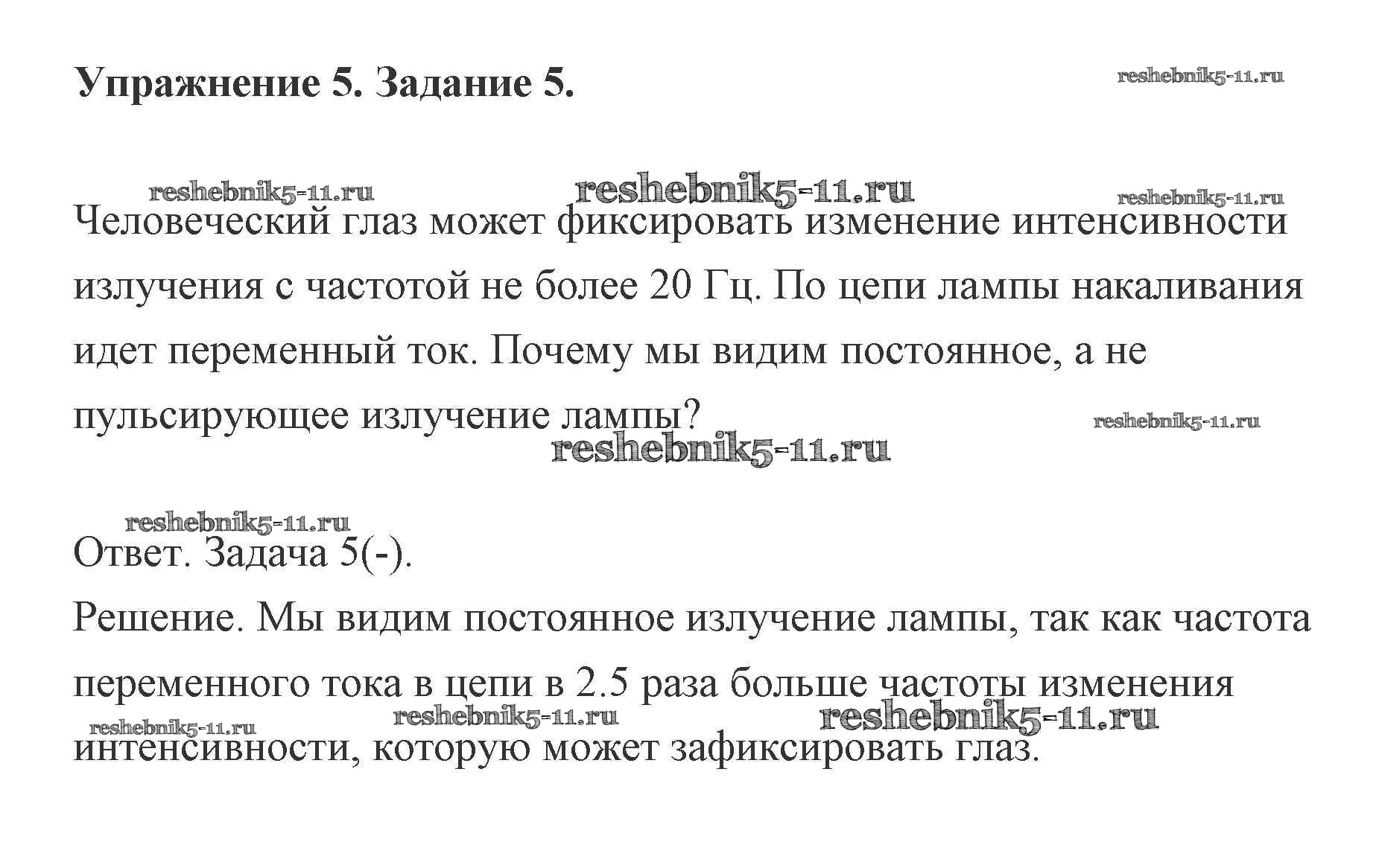 Готовая домашняя работа с ответами по Физике за 11 класс Мякишев, Буховцев, Чаругин, Николаева, Парфеньтьева Учебник Базовый и углубленный уровень Просвещение 2019 ФГОС - Глава 5. Упражнение 5 (Задания) 5