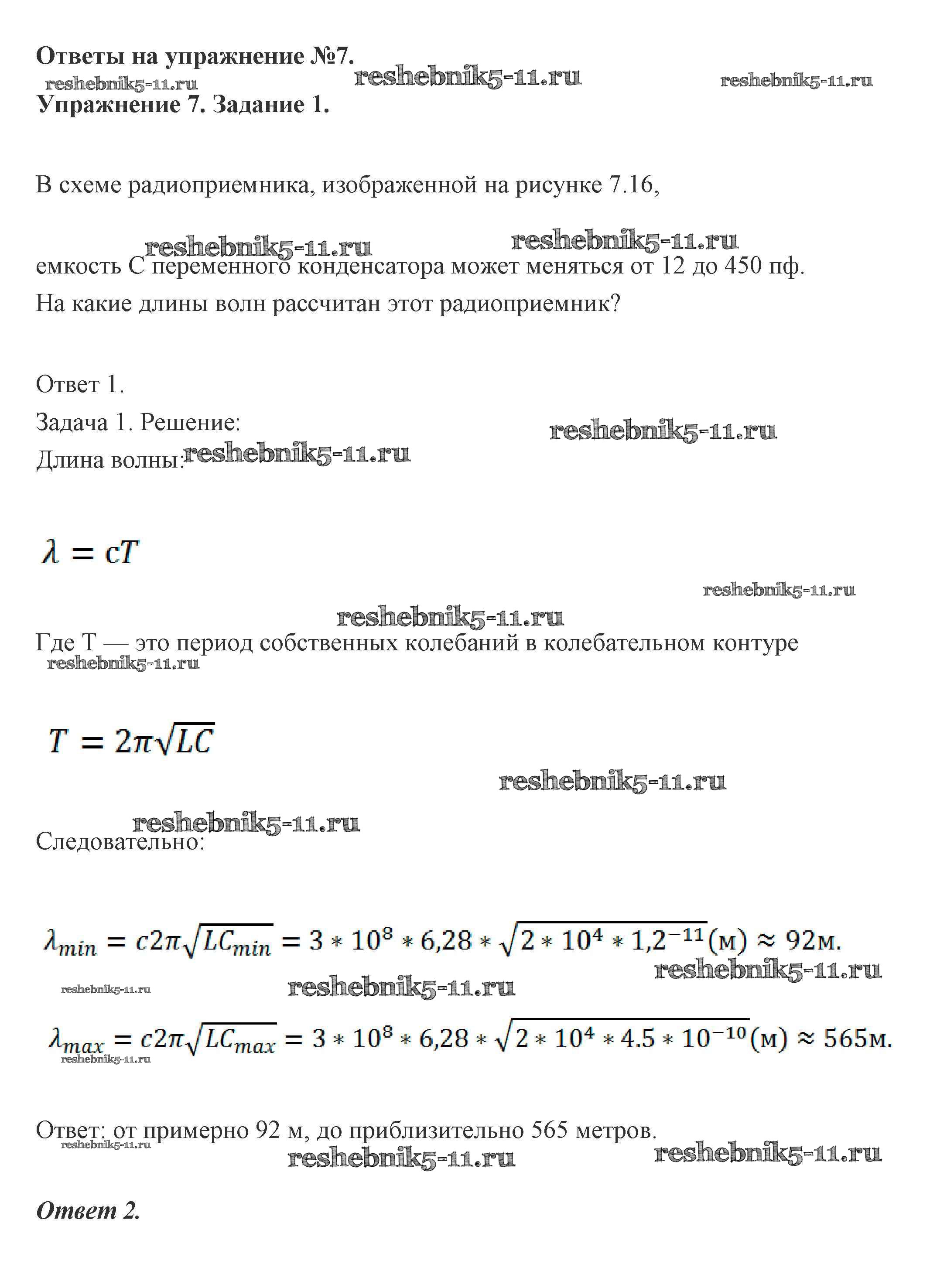 Готовая домашняя работа с ответами по Физике за 11 класс Мякишев, Буховцев, Чаругин, Николаева, Парфеньтьева Учебник Базовый и углубленный уровень Просвещение 2019 ФГОС - Глава 7. Упражнение 7 (Задания) 1