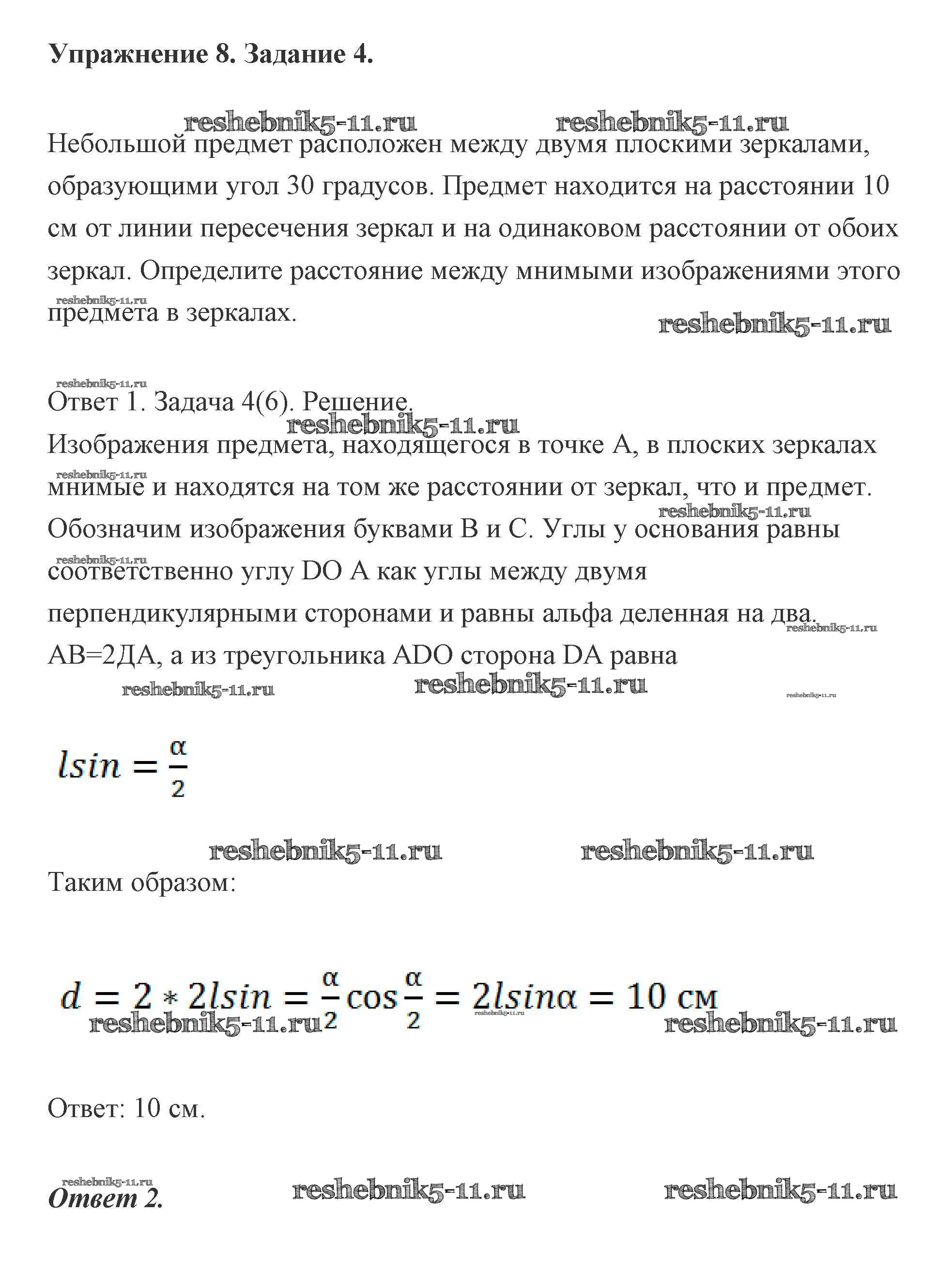 Готовая домашняя работа с ответами по Физике за 11 класс Мякишев, Буховцев, Чаругин, Николаева, Парфеньтьева Учебник Базовый и углубленный уровень Просвещение 2019 ФГОС - Упражнение 8 (Задания) 4