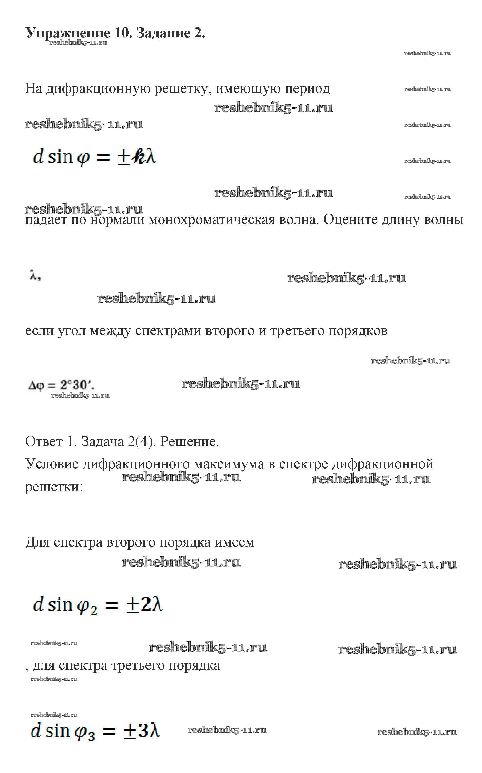 Готовая домашняя работа с ответами по Физике за 11 класс Мякишев, Буховцев, Чаругин, Николаева, Парфеньтьева Учебник Базовый и углубленный уровень Просвещение 2019 ФГОС - Упражнение 10 (Задания) 2