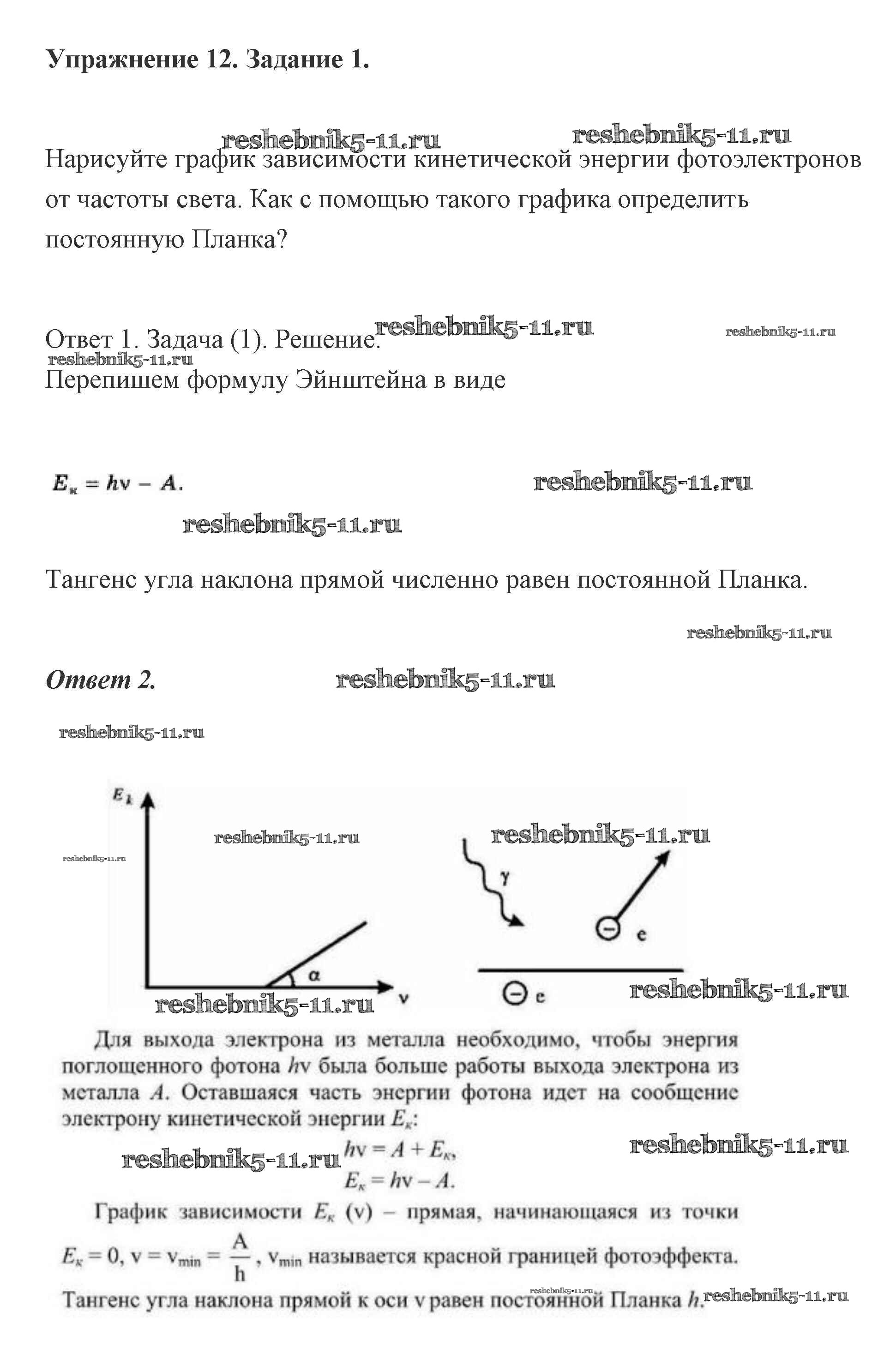 Готовая домашняя работа с ответами по Физике за 11 класс Мякишев, Буховцев, Чаругин, Николаева, Парфеньтьева Учебник Базовый и углубленный уровень Просвещение 2019 ФГОС - Глава 11. Упражнение 12 (Задания) 1
