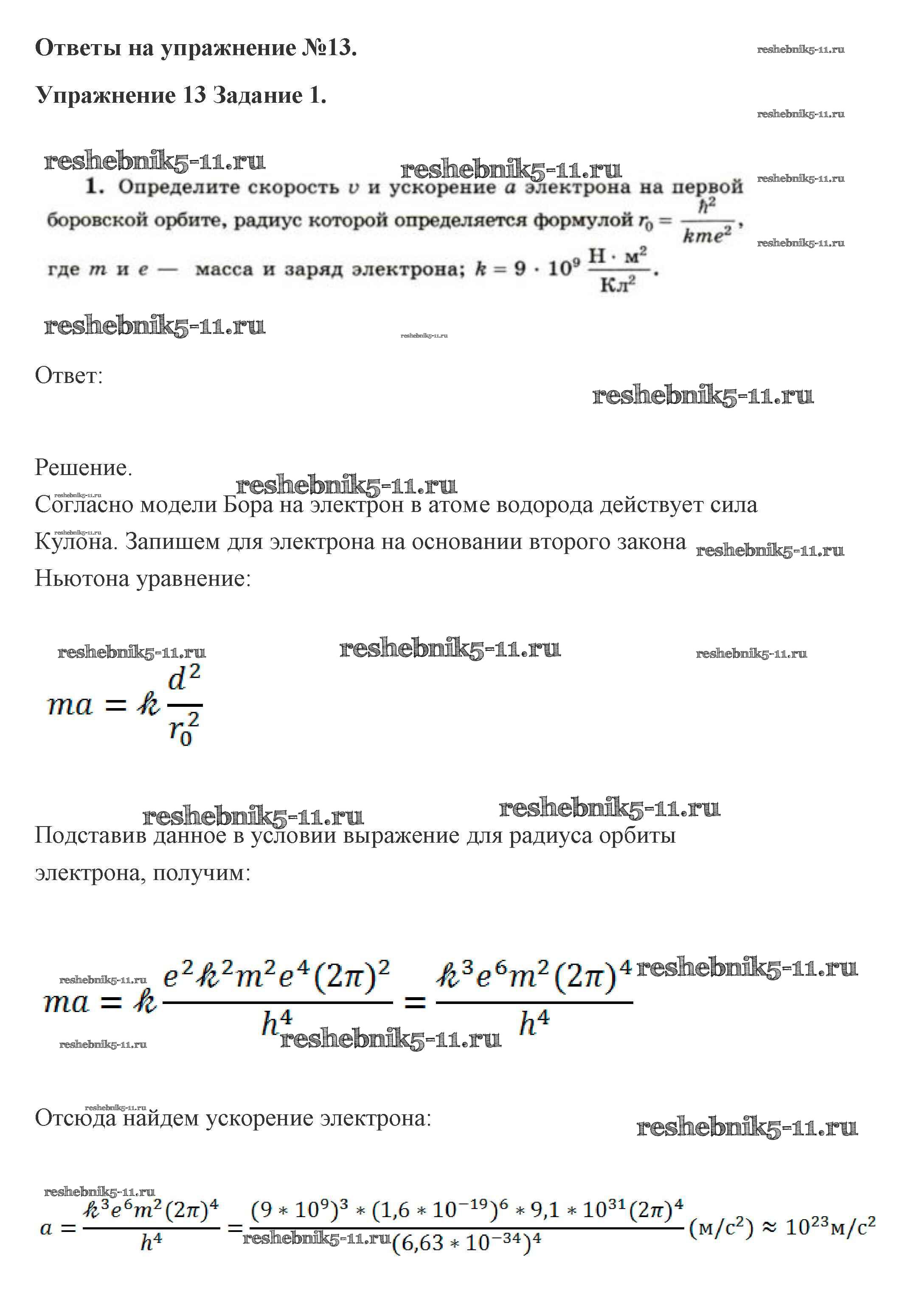 Готовая домашняя работа с ответами по Физике за 11 класс Мякишев, Буховцев, Чаругин, Николаева, Парфеньтьева Учебник Базовый и углубленный уровень Просвещение 2019 ФГОС - Глава 12. Упражнение 13 (Задания) 1