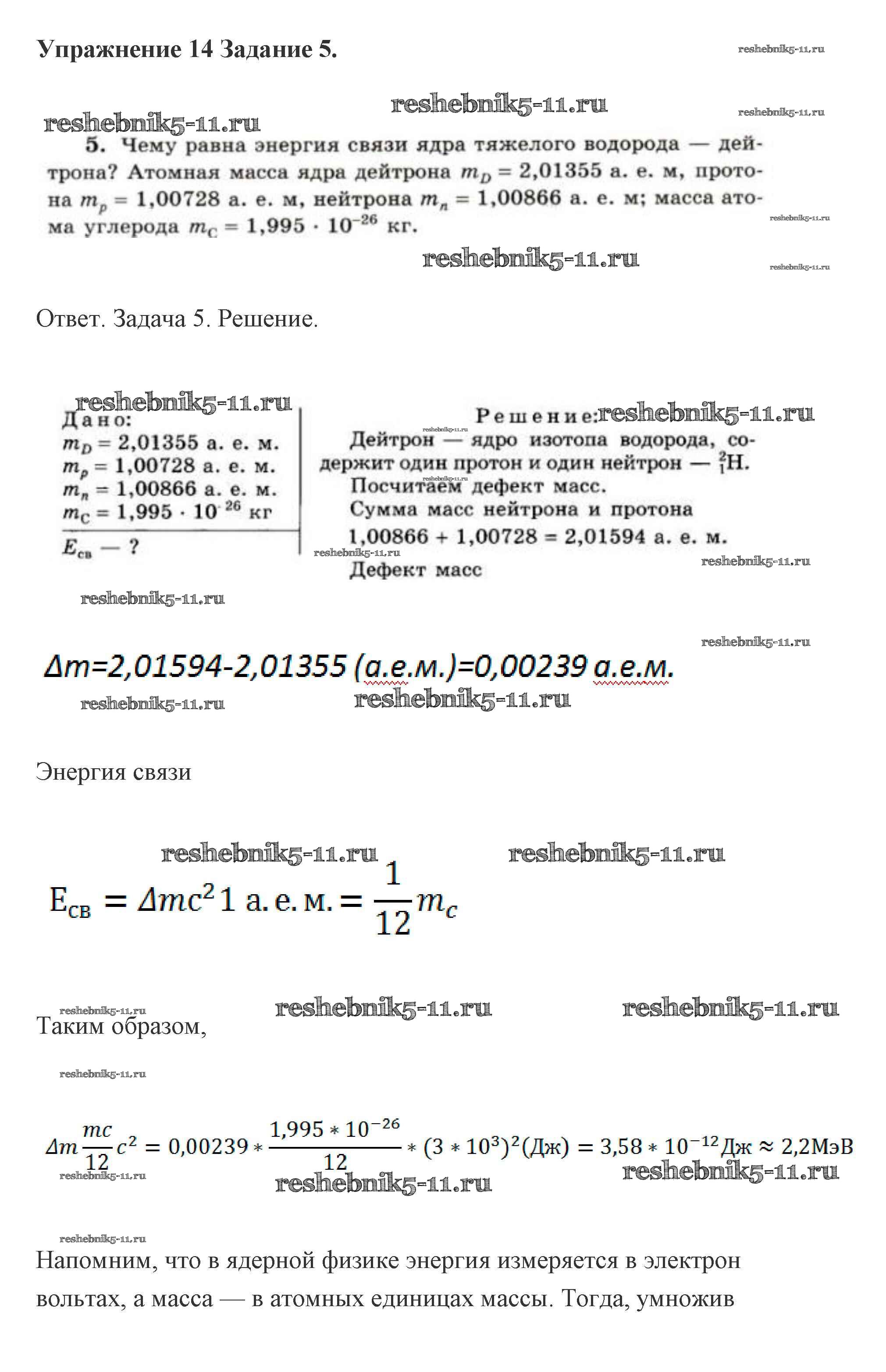 Готовая домашняя работа с ответами по Физике за 11 класс Мякишев, Буховцев, Чаругин, Николаева, Парфеньтьева Учебник Базовый и углубленный уровень Просвещение 2019 ФГОС - Глава 13. Упражнение 14 (Задания) 5