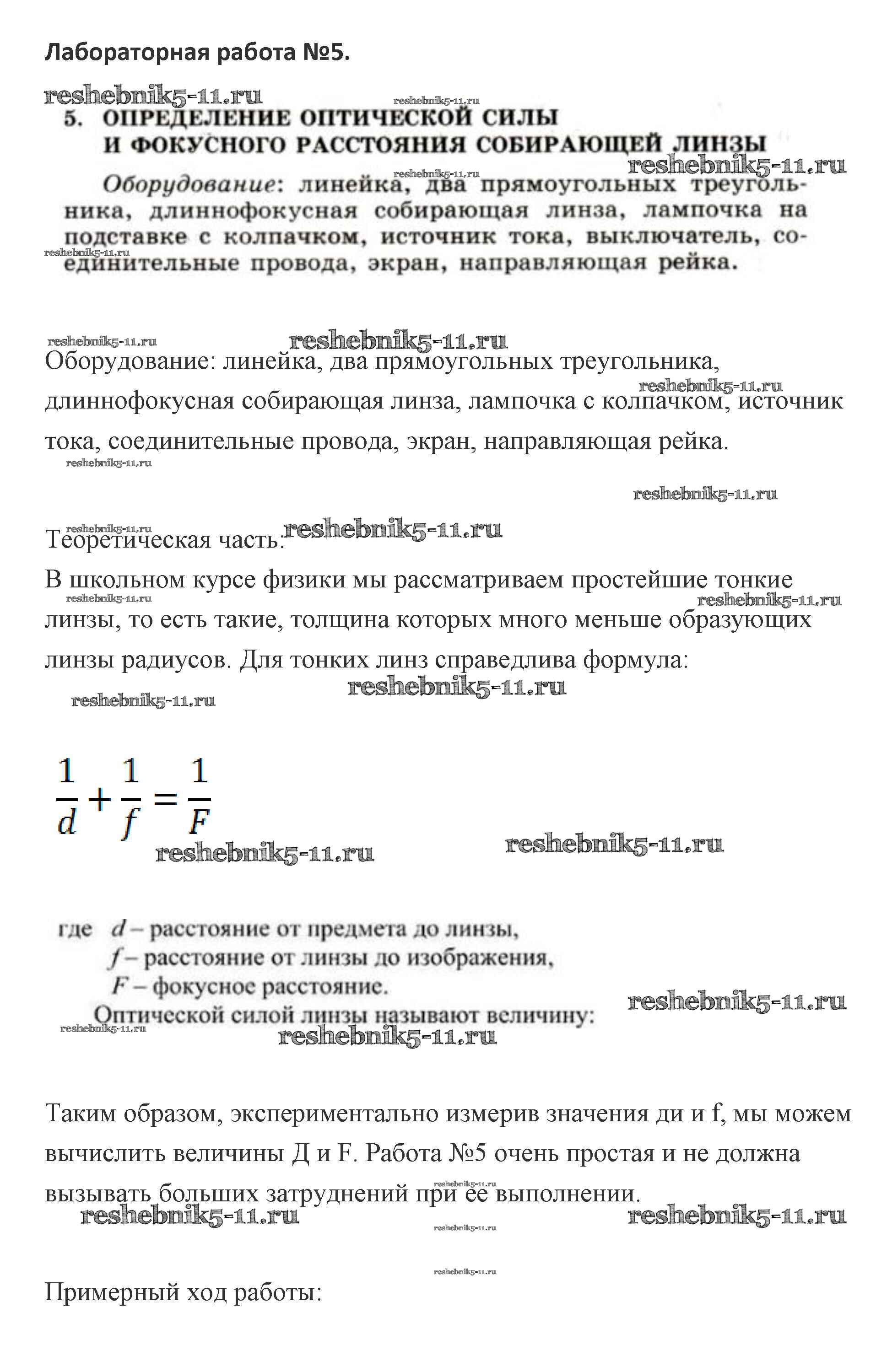 Готовая домашняя работа с ответами по Физике за 11 класс Мякишев, Буховцев, Чаругин, Николаева, Парфеньтьева Учебник Базовый и углубленный уровень Просвещение 2019 ФГОС - Лабораторные работы 5