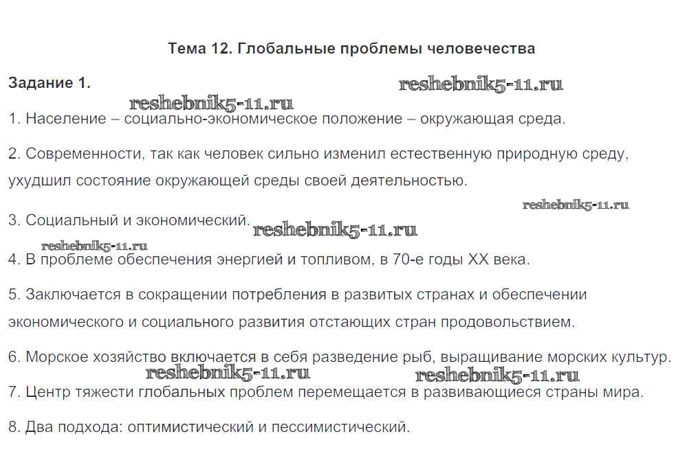 Тема 12. Глобальные проблемы человечества (стр. 60-62)