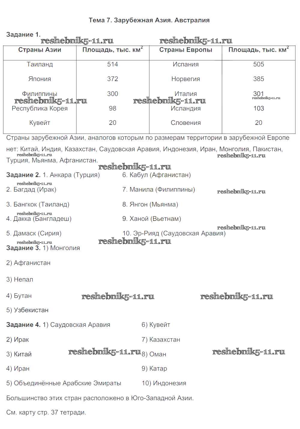 Готовая домашняя работа с ответами по Географии за 10, 11 класс Максаковский, Заяц Рабочая тетрадь Просвещение 2019 ФГОС - Тема 7. Зарубежная Азия. Австралия (стр. 36-42) страница 36