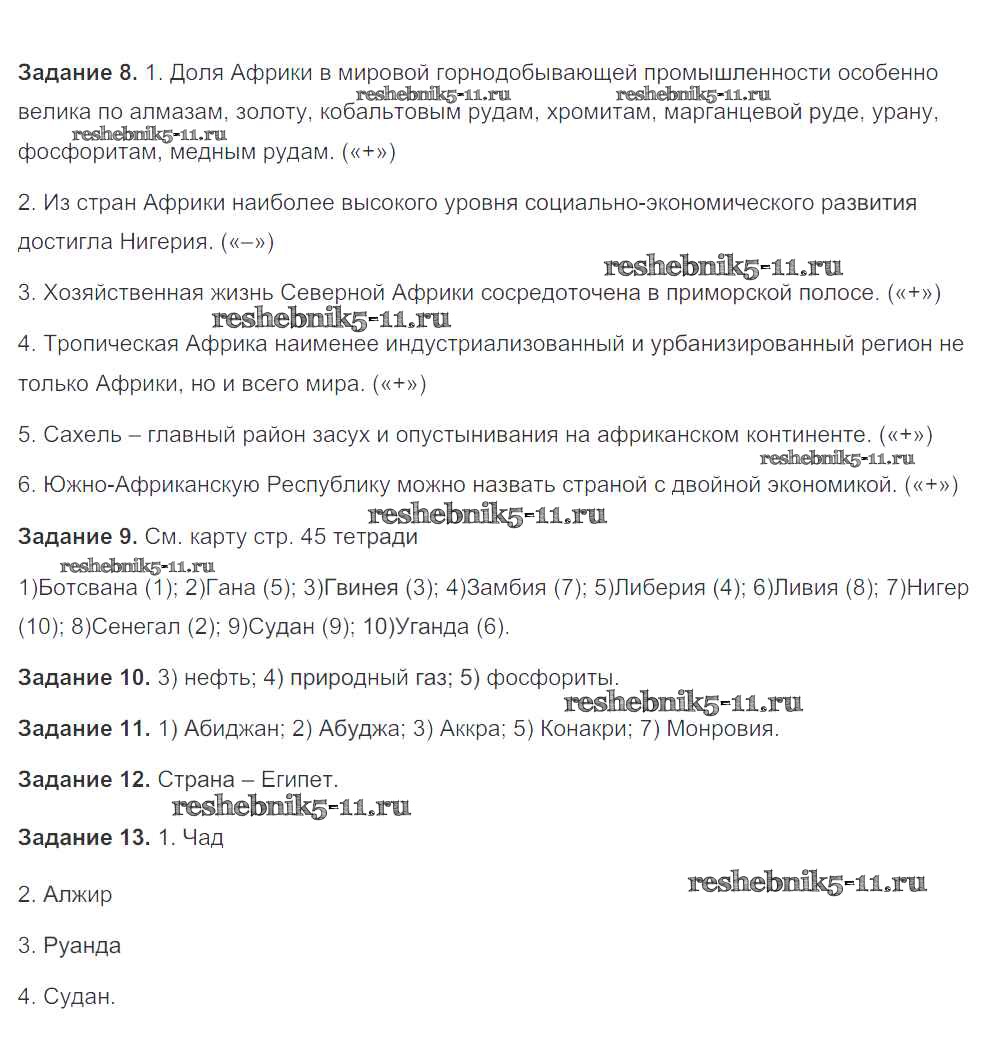 Готовая домашняя работа с ответами по Географии за 10, 11 класс Максаковский, Заяц Рабочая тетрадь Просвещение 2019 ФГОС - Тема 8. Африка (стр. 43-46) страница 44