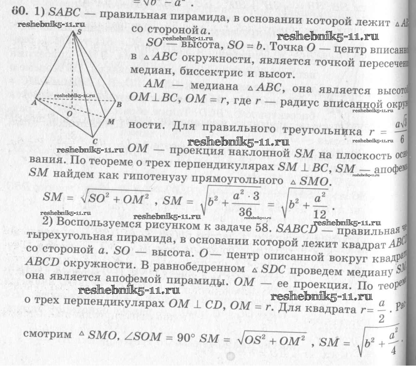 Готовая домашняя работа с ответами по Геометрии за 10, 11 класс Погорелов Учебник Просвещение 2014 - Параграфы 5 60