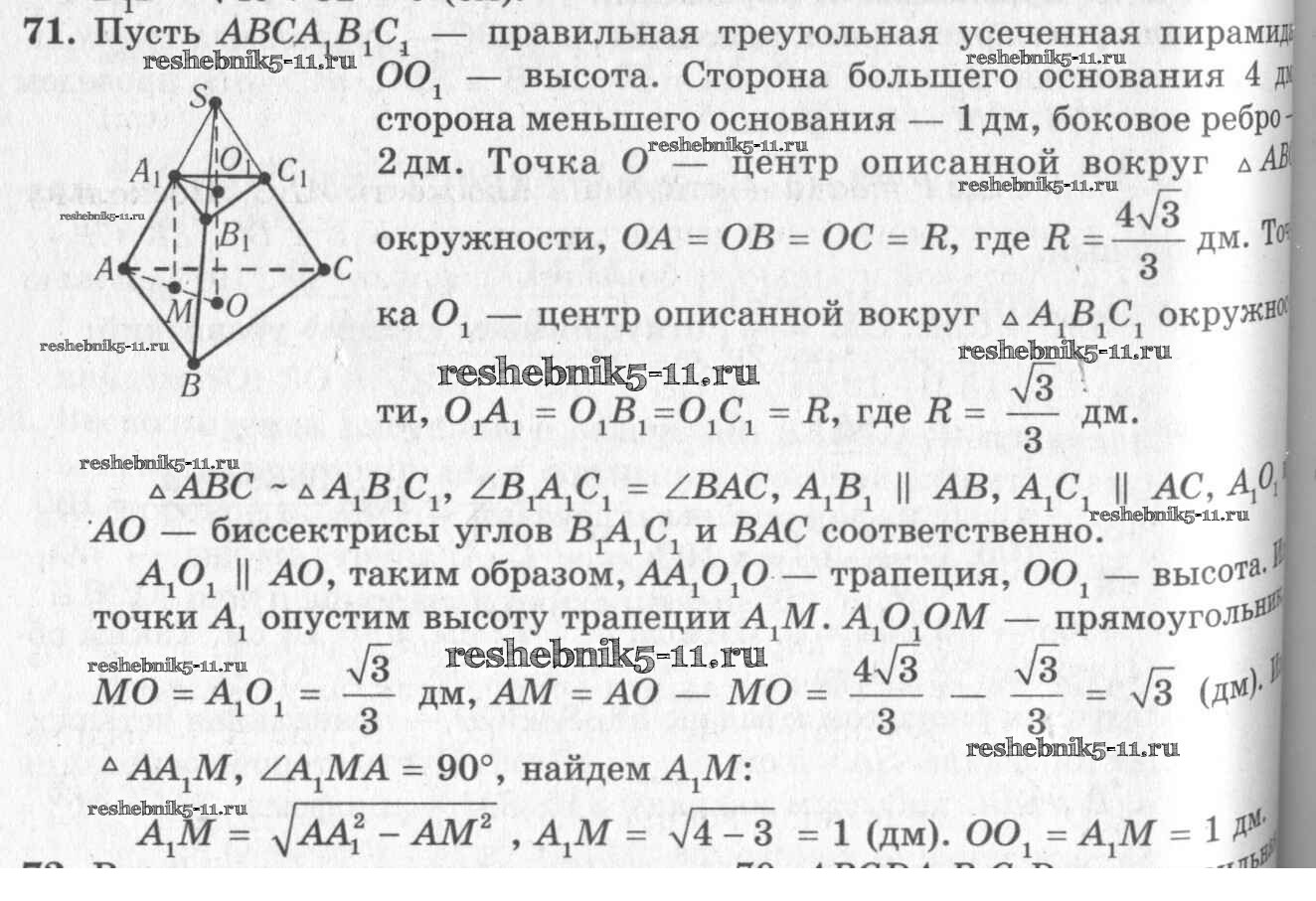 Готовая домашняя работа с ответами по Геометрии за 10, 11 класс Погорелов Учебник Просвещение 2014 - Параграфы 5 71