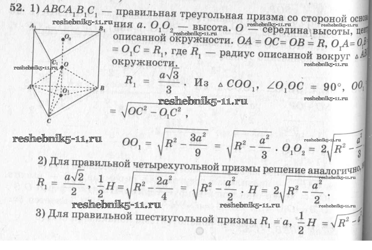 Готовая домашняя работа с ответами по Геометрии за 10, 11 класс Погорелов Учебник Просвещение 2014 - Параграфы 6 52
