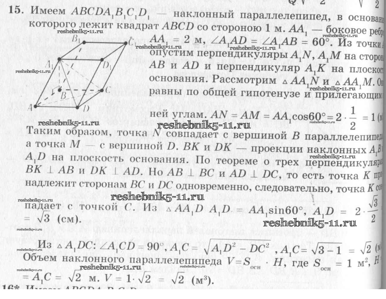 Готовая домашняя работа с ответами по Геометрии за 10, 11 класс Погорелов Учебник Просвещение 2014 - Параграфы 7 15