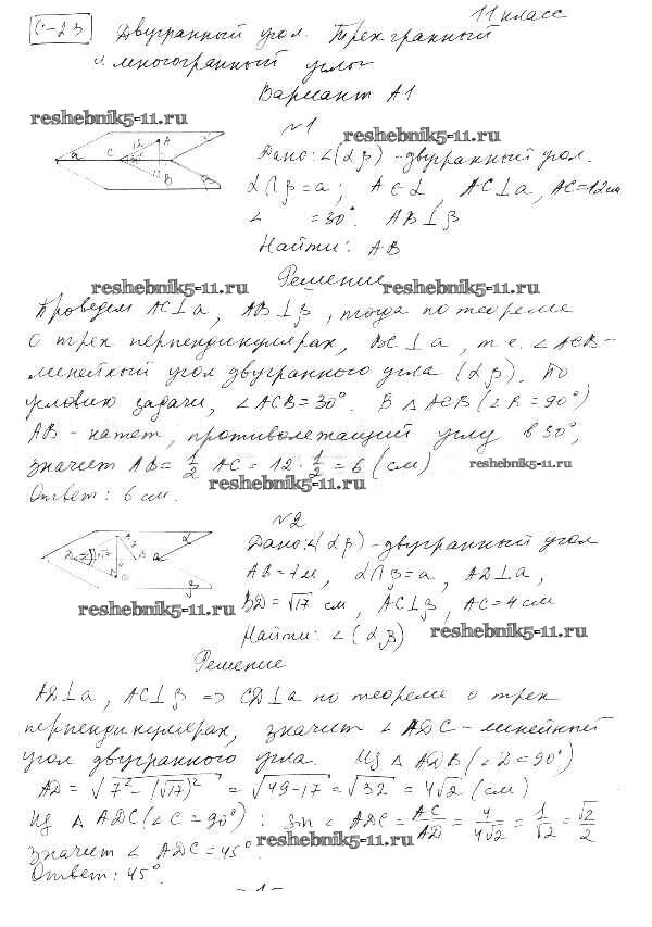 Решебник / к учебнику Погорелова 7-11 / самостоятельная работа / ср-23. вариант / А1