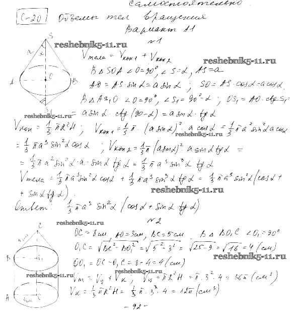 Решебник / к учебнику Атанасяна 10-11 / самостоятельная работа / ср-20. вариант / А1