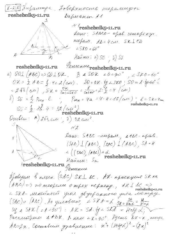 Готовая домашняя работа с ответами по Геометрии за 11 класс Ершова, Голобородько Самостоятельные и контрольные работы Илекса 2004 ФГОС - КР-2(8). Варианты А1