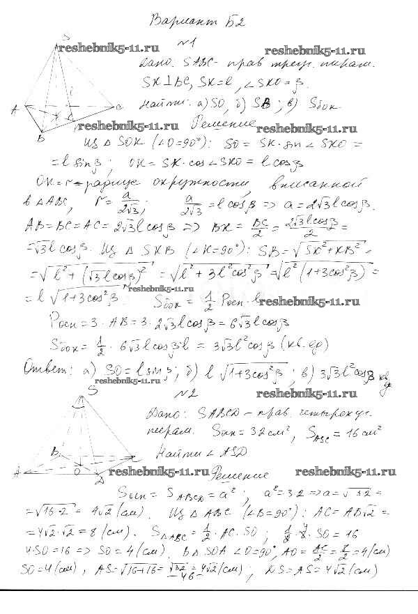 Готовая домашняя работа с ответами по Геометрии за 11 класс Ершова, Голобородько Самостоятельные и контрольные работы Илекса 2004 ФГОС - СР-9(31). Варианты Б2