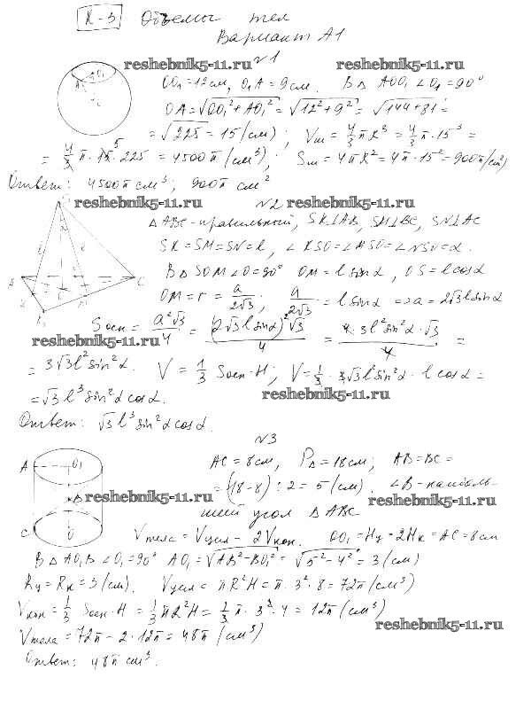 Решебник / к учебнику Атанасяна 10-11 / контрольная работа / кр-3. вариант / А1