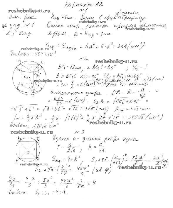 Готовая домашняя работа с ответами по Геометрии за 11 класс Ершова, Голобородько Самостоятельные и контрольные работы Илекса 2004 ФГОС - СР-37. Варианты А2