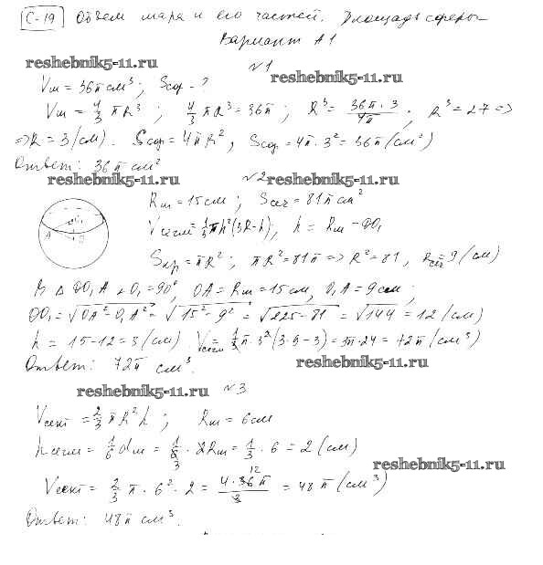 Решебник / к учебнику Атанасяна 10-11 / самостоятельная работа / ср-19. вариант / А1