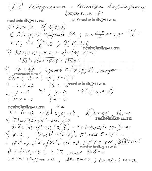 Решебник / к учебнику Атанасяна 10-11 / контрольная работа / кр-1. вариант / А1