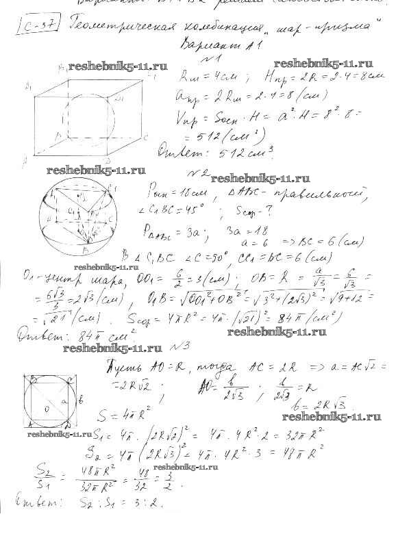 Готовая домашняя работа с ответами по Геометрии за 11 класс Ершова, Голобородько Самостоятельные и контрольные работы Илекса 2004 ФГОС - СР-37. Варианты А1