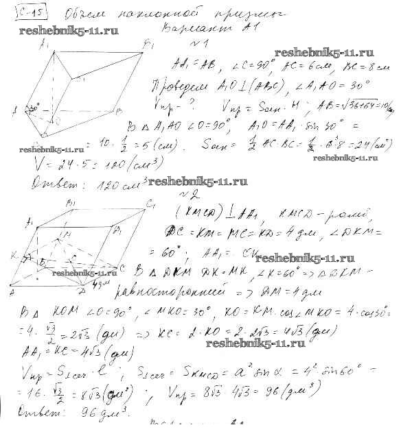 Готовая домашняя работа с ответами по Геометрии за 11 класс Ершова, Голобородько Самостоятельные и контрольные работы Илекса 2004 ФГОС - СР-15. Варианты А1
