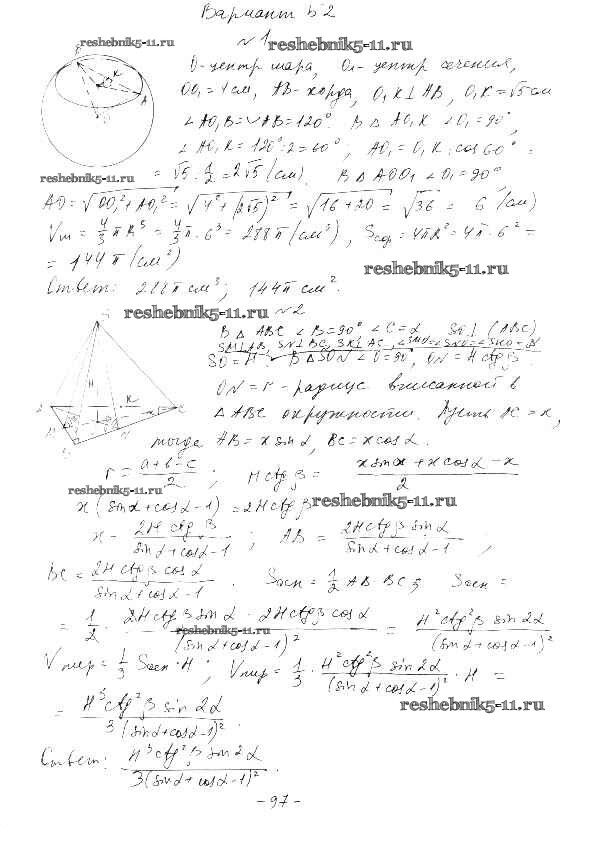 Готовая домашняя работа с ответами по Геометрии за 11 класс Ершова, Голобородько Самостоятельные и контрольные работы Илекса 2004 ФГОС - КР-3. Варианты Б2