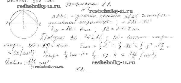 Готовая домашняя работа с ответами по Геометрии за 11 класс Ершова, Голобородько Самостоятельные и контрольные работы Илекса 2004 ФГОС - СР-38. Варианты А2