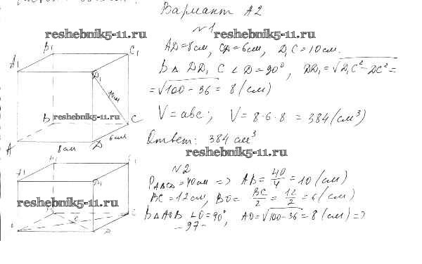 Готовая домашняя работа с ответами по Геометрии за 11 класс Ершова, Голобородько Самостоятельные и контрольные работы Илекса 2004 ФГОС - СР-21(43). Варианты А2
