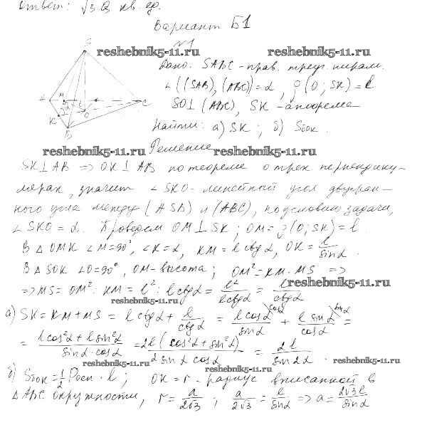 Готовая домашняя работа с ответами по Геометрии за 11 класс Ершова, Голобородько Самостоятельные и контрольные работы Илекса 2004 ФГОС - КР-2(8). Варианты Б1