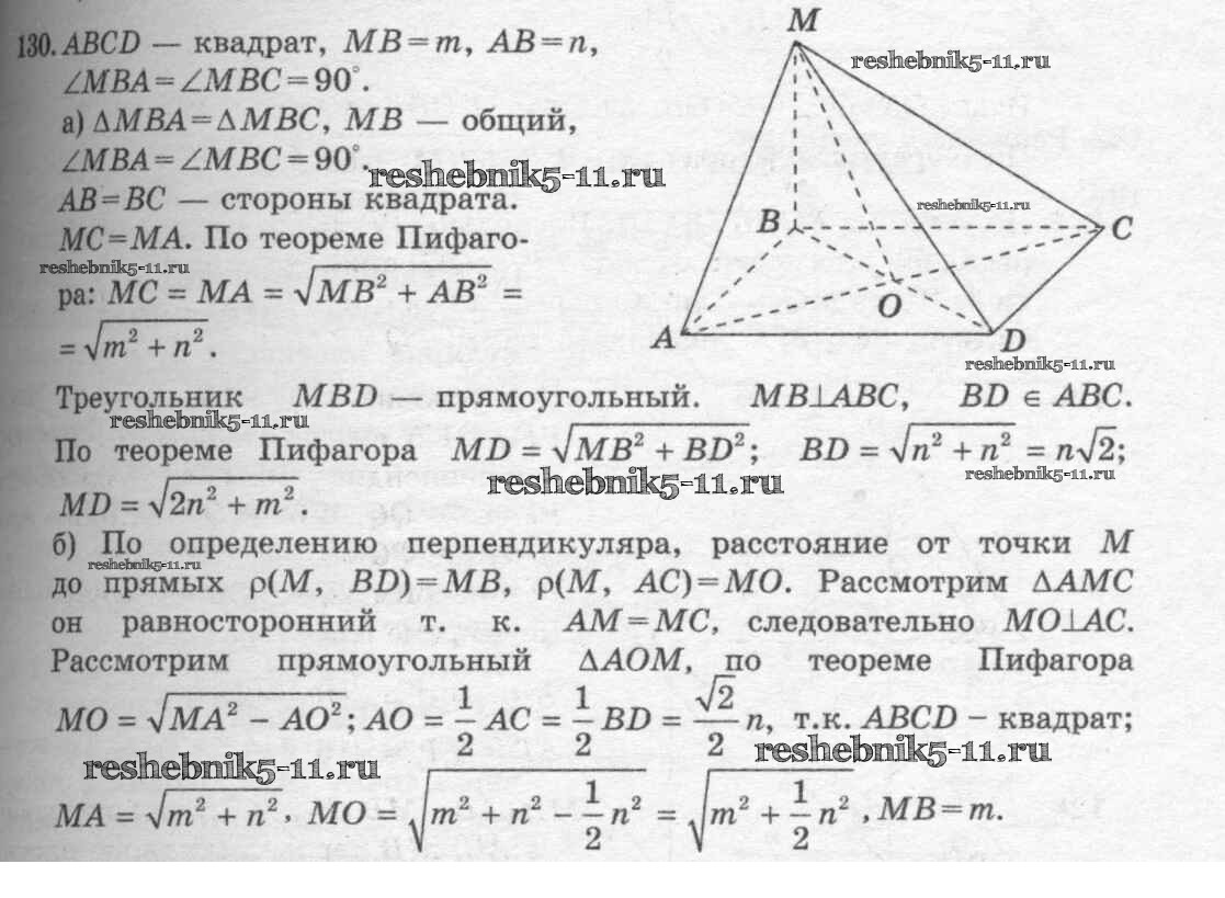 Готовая домашняя работа с ответами по Геометрии за 10, 11 класс Атанасян, Бутузов, Кадомцев, Киселева, Позняк Учебник Базовый и углубленный уровень Просвещение 2015 ФГОС - Задачи 130
