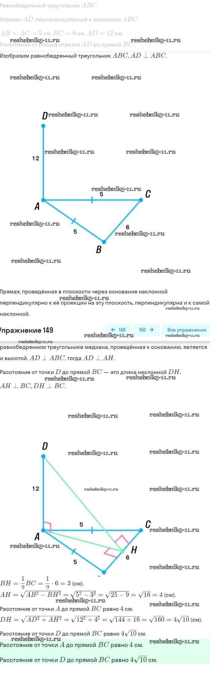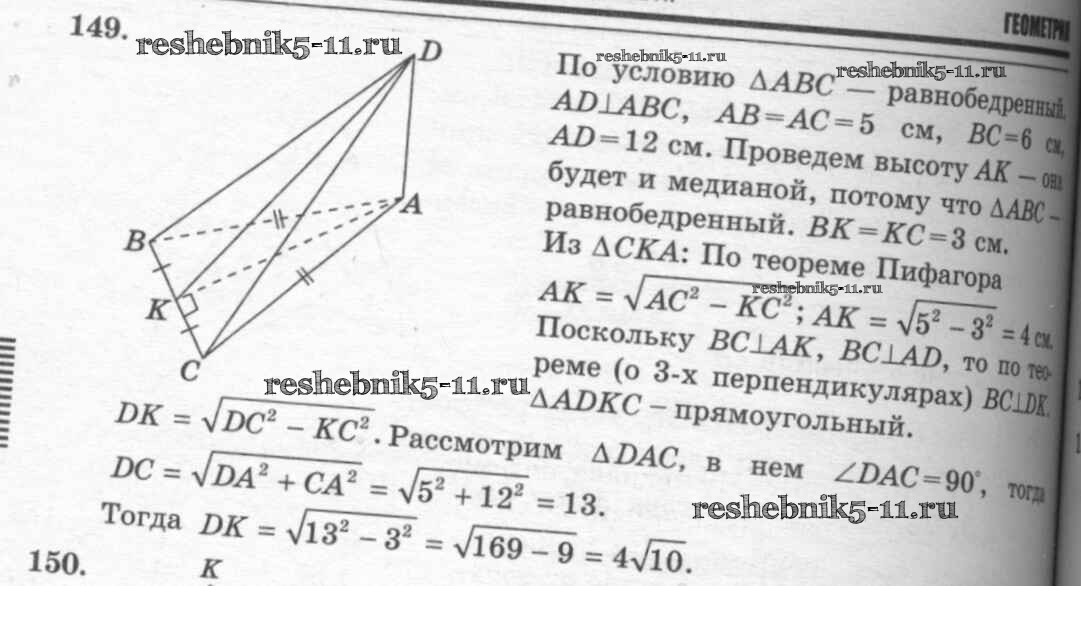 Готовая домашняя работа с ответами по Геометрии за 10, 11 класс Атанасян, Бутузов, Кадомцев, Киселева, Позняк Учебник Базовый и углубленный уровень Просвещение 2015 ФГОС - Задачи 149