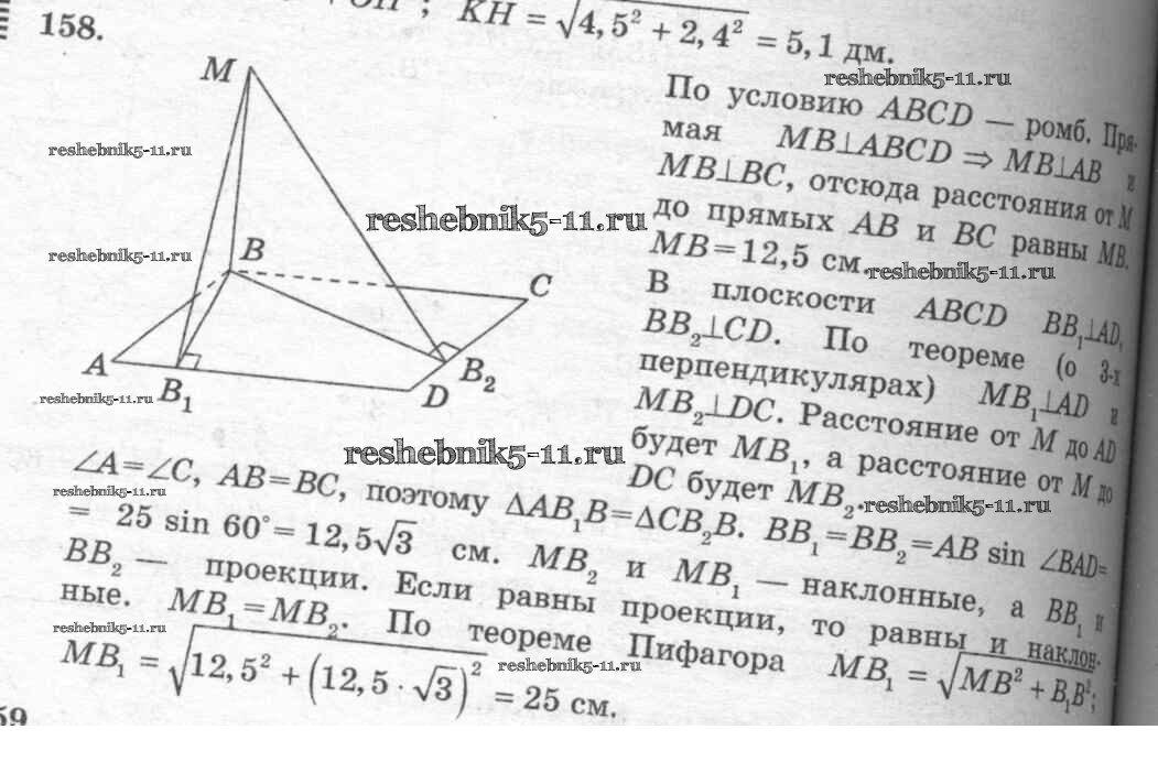 Готовая домашняя работа с ответами по Геометрии за 10, 11 класс Атанасян, Бутузов, Кадомцев, Киселева, Позняк Учебник Базовый и углубленный уровень Просвещение 2015 ФГОС - Задачи 158