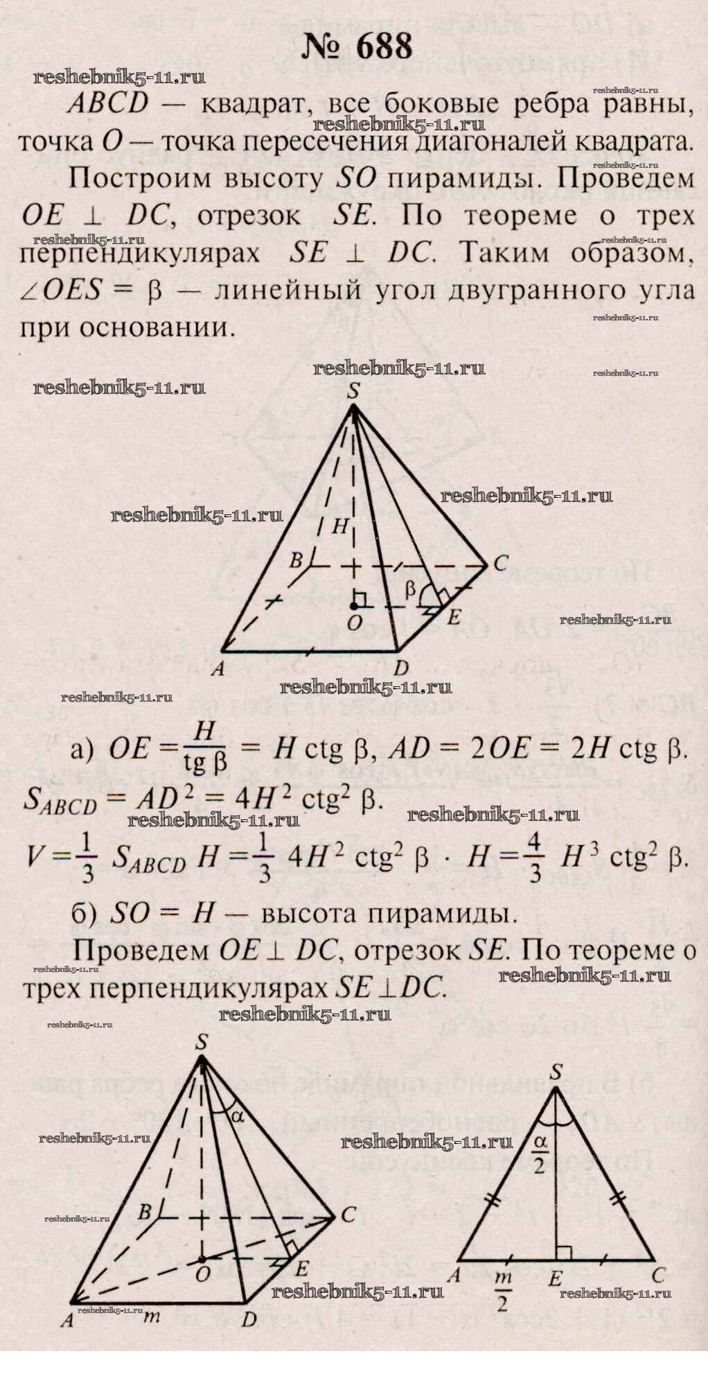 Готовая домашняя работа с ответами по Геометрии за 10, 11 класс Атанасян, Бутузов, Кадомцев, Киселева, Позняк Учебник Базовый и углубленный уровень Просвещение 2015 ФГОС - Задачи 688
