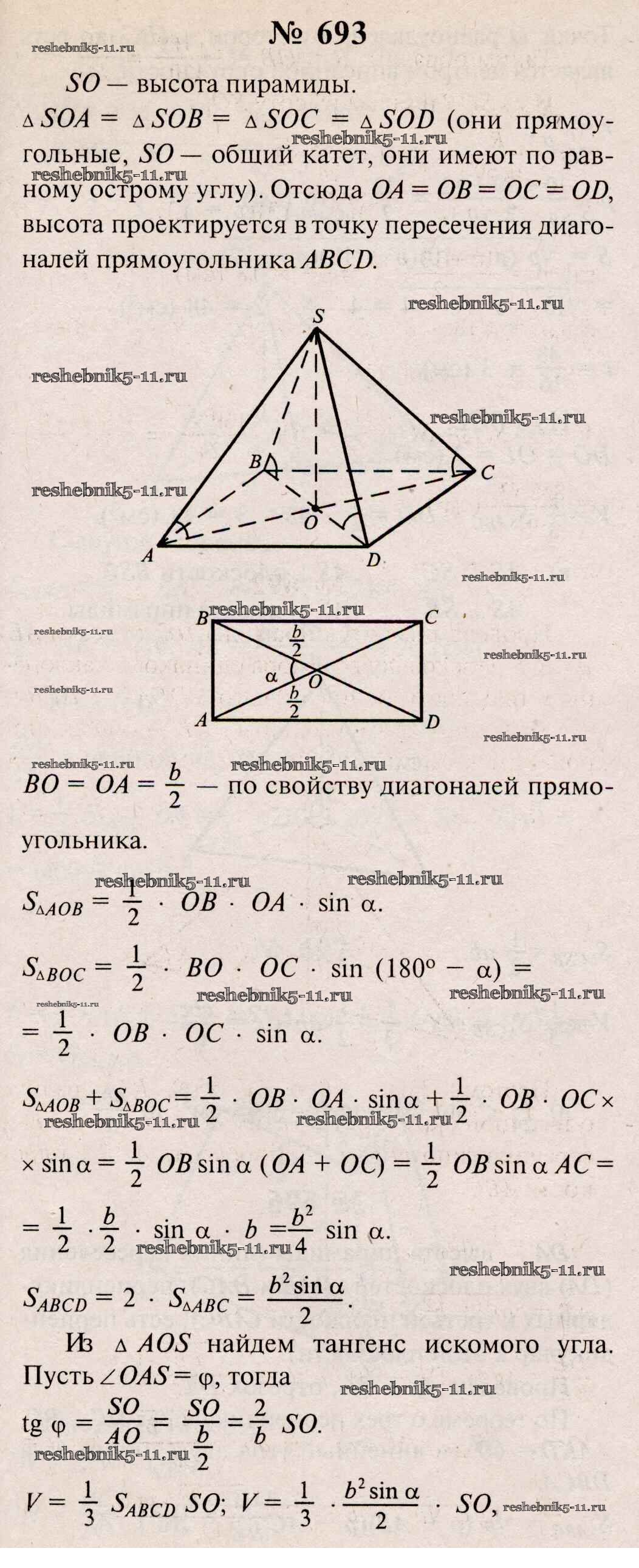 Готовая домашняя работа с ответами по Геометрии за 10, 11 класс Атанасян, Бутузов, Кадомцев, Киселева, Позняк Учебник Базовый и углубленный уровень Просвещение 2015 ФГОС - Задачи 693