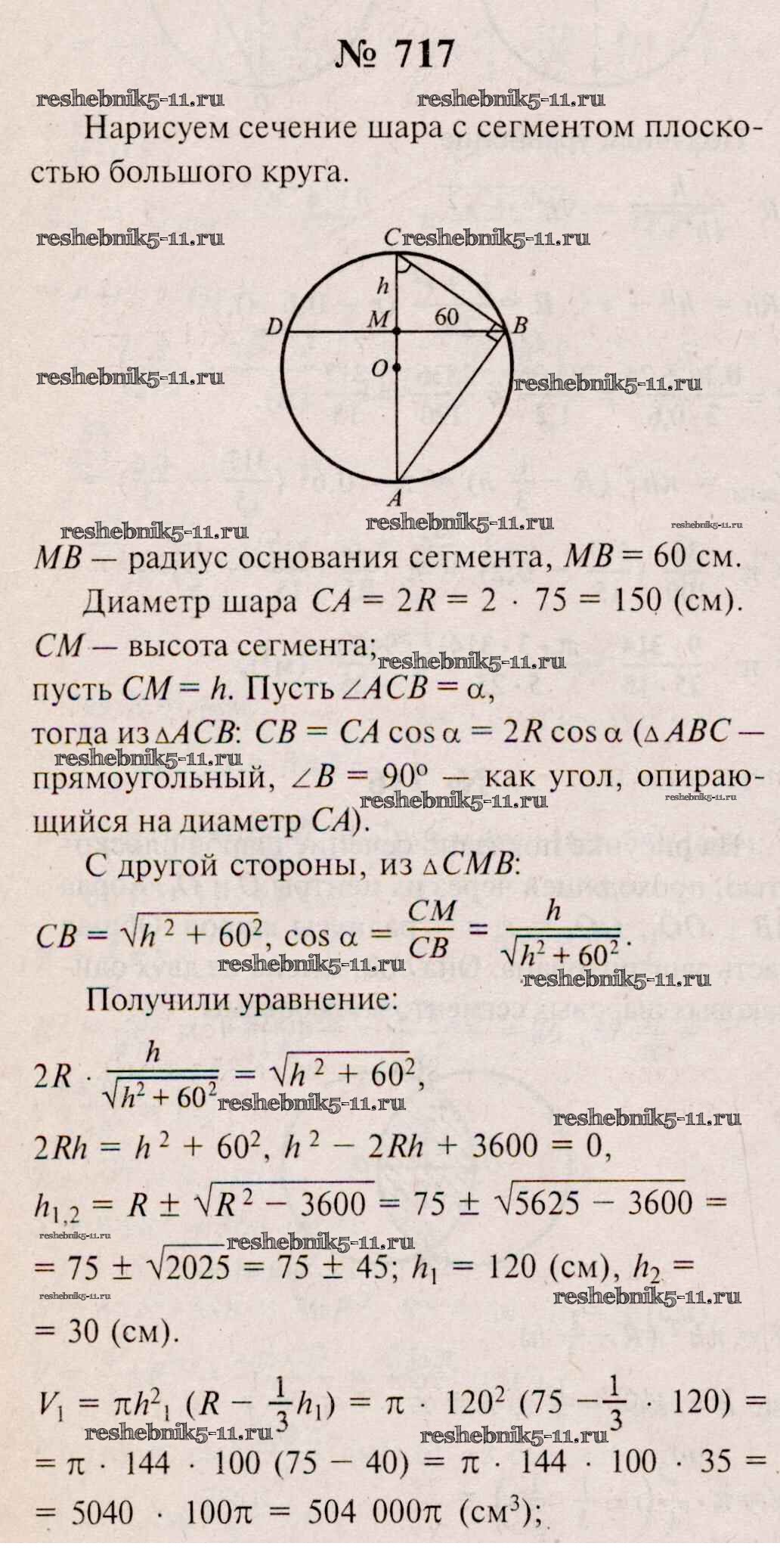 Готовая домашняя работа с ответами по Геометрии за 10, 11 класс Атанасян, Бутузов, Кадомцев, Киселева, Позняк Учебник Базовый и углубленный уровень Просвещение 2015 ФГОС - Задачи 717