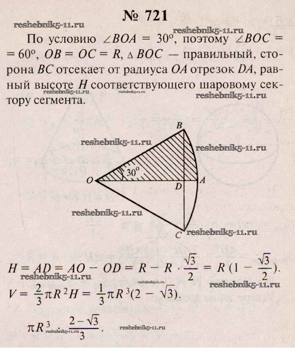 Готовая домашняя работа с ответами по Геометрии за 10, 11 класс Атанасян, Бутузов, Кадомцев, Киселева, Позняк Учебник Базовый и углубленный уровень Просвещение 2015 ФГОС - Задачи 721
