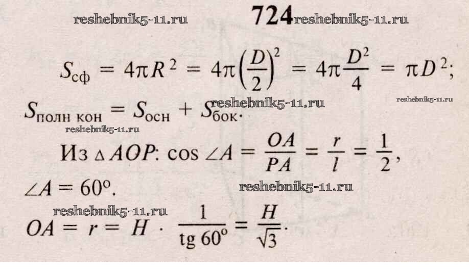 Готовая домашняя работа с ответами по Геометрии за 10, 11 класс Атанасян, Бутузов, Кадомцев, Киселева, Позняк Учебник Базовый и углубленный уровень Просвещение 2015 ФГОС - Задачи 724