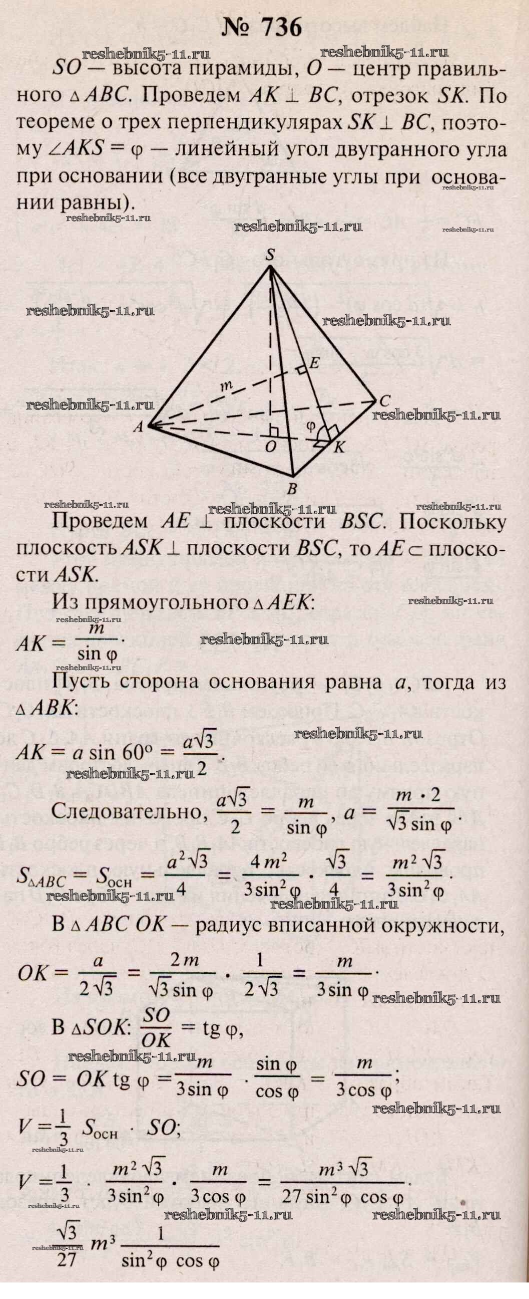 Готовая домашняя работа с ответами по Геометрии за 10, 11 класс Атанасян, Бутузов, Кадомцев, Киселева, Позняк Учебник Базовый и углубленный уровень Просвещение 2015 ФГОС - Задачи 736