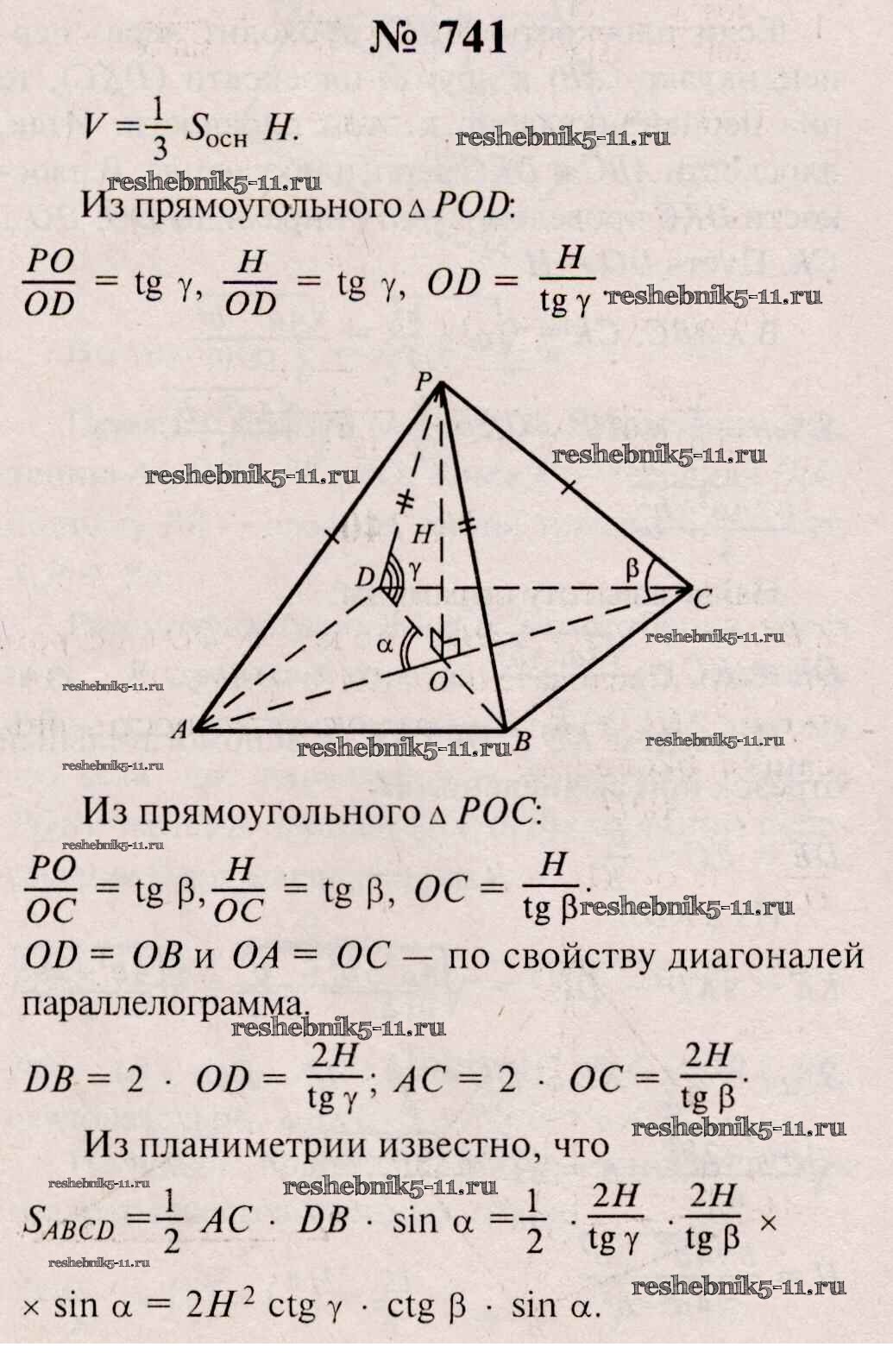 Готовая домашняя работа с ответами по Геометрии за 10, 11 класс Атанасян, Бутузов, Кадомцев, Киселева, Позняк Учебник Базовый и углубленный уровень Просвещение 2015 ФГОС - Задачи 741