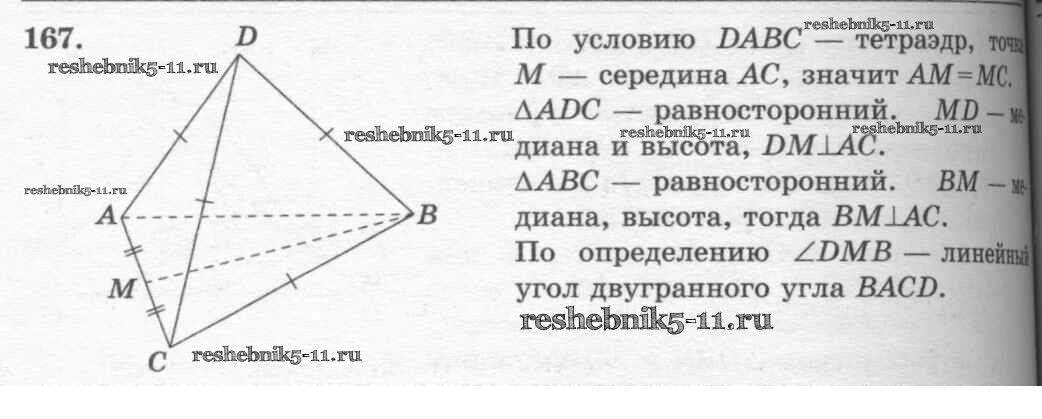 Готовая домашняя работа с ответами по Геометрии за 10, 11 класс Атанасян, Бутузов, Кадомцев, Киселева, Позняк Учебник Базовый и углубленный уровень Просвещение 2015 ФГОС - Задачи 167