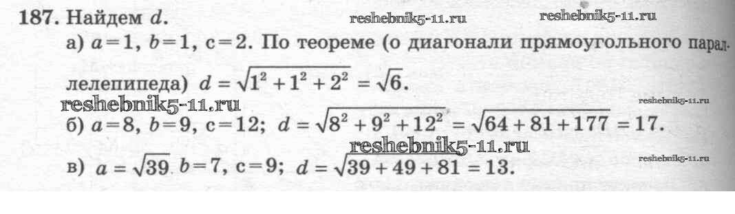 Готовая домашняя работа с ответами по Геометрии за 10, 11 класс Атанасян, Бутузов, Кадомцев, Киселева, Позняк Учебник Базовый и углубленный уровень Просвещение 2015 ФГОС - Задачи 187