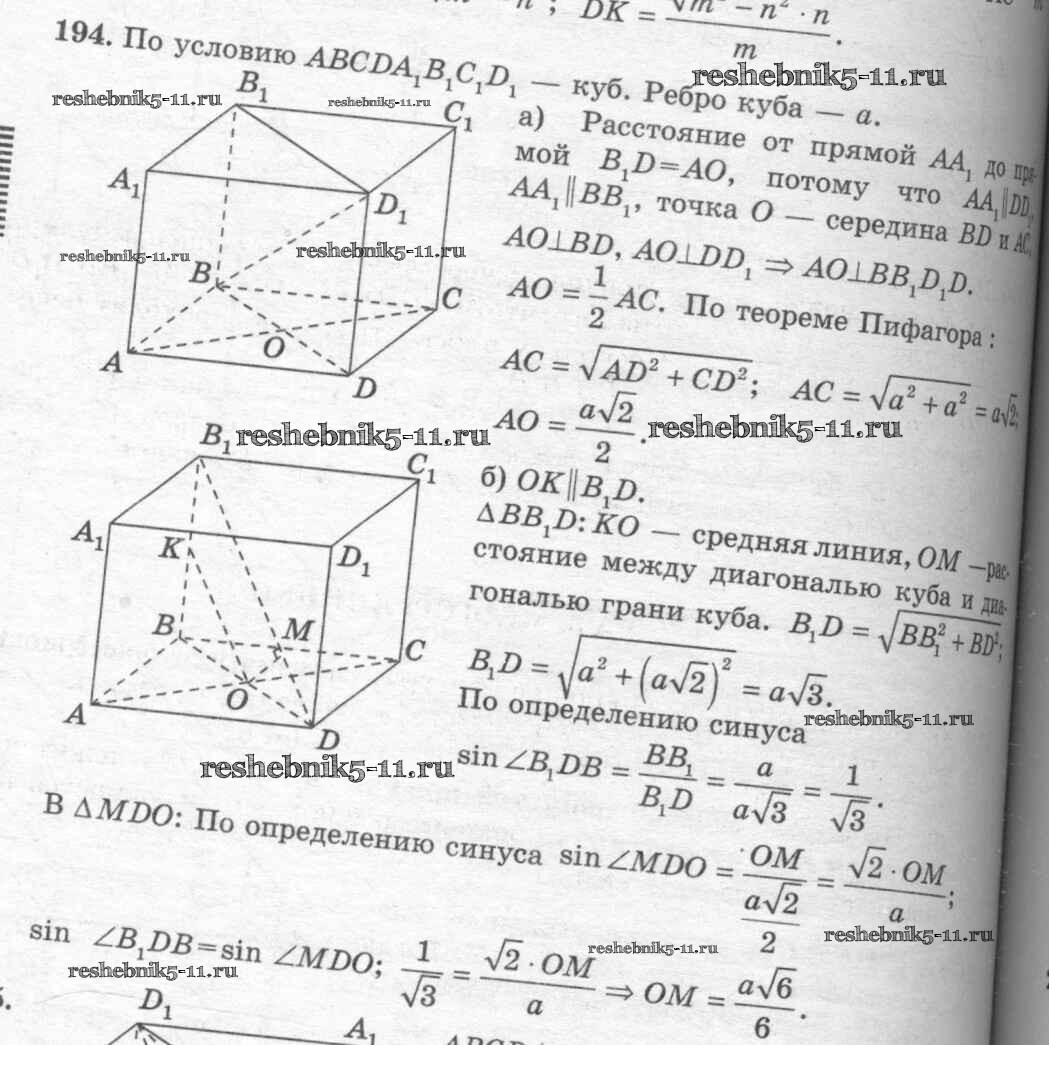Готовая домашняя работа с ответами по Геометрии за 10, 11 класс Атанасян, Бутузов, Кадомцев, Киселева, Позняк Учебник Базовый и углубленный уровень Просвещение 2015 ФГОС - Задачи 194