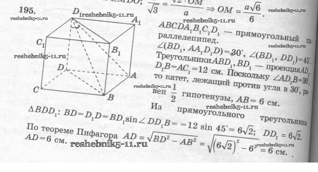Готовая домашняя работа с ответами по Геометрии за 10, 11 класс Атанасян, Бутузов, Кадомцев, Киселева, Позняк Учебник Базовый и углубленный уровень Просвещение 2015 ФГОС - Задачи 195