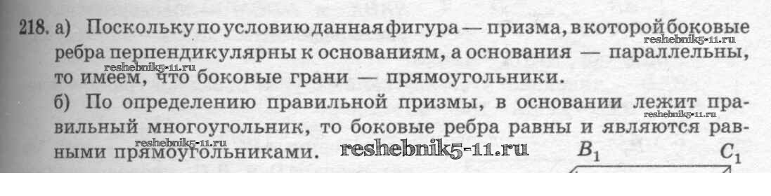 Готовая домашняя работа с ответами по Геометрии за 10, 11 класс Атанасян, Бутузов, Кадомцев, Киселева, Позняк Учебник Базовый и углубленный уровень Просвещение 2015 ФГОС - Задачи 218
